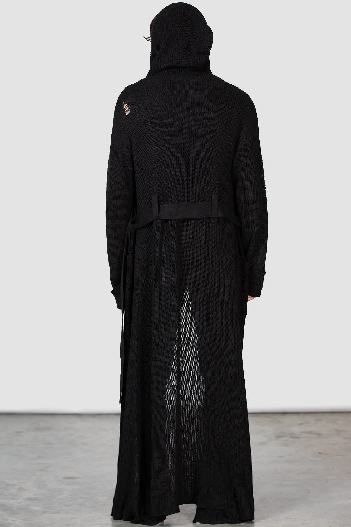 Be ready to tackle the elements in dark style with the ‘Apparitions’ long cardigan. Made using a superior cotton blend for an effortless look! Complete with hood, tie-up front and long sleeves with cuffs. Perfect for throwing over yer everyday looks!