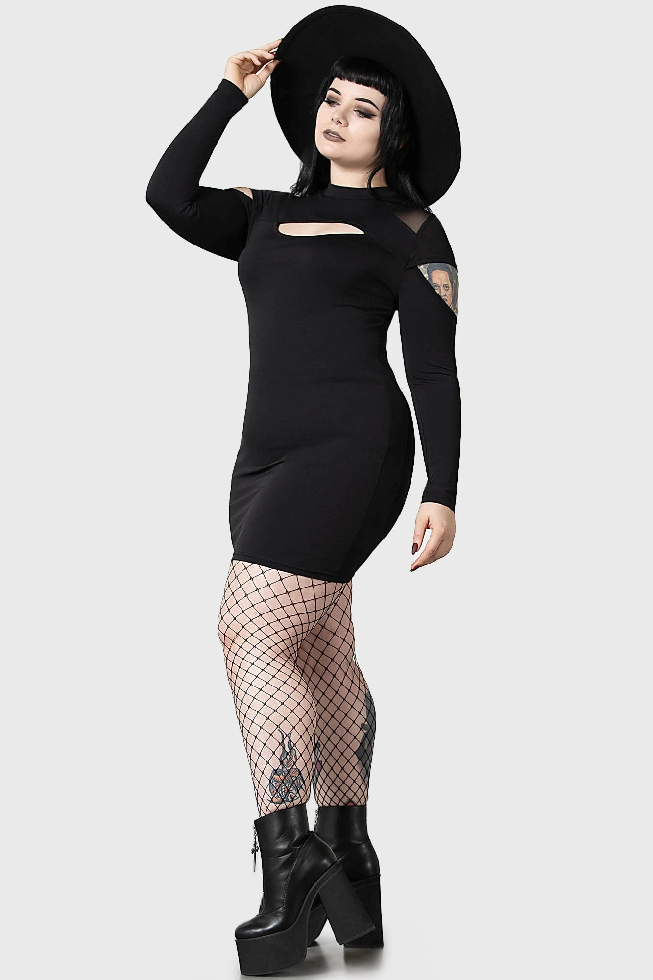 Get ready for your stars to align in our ‘Cosmic shift’ Long sleeve dress. Crafted in soft, stretch fabric to give you the perfect figure hugging fit. Finished with a cut out on the chest and sleeves and mesh inserts you’re set to look outta this world day or night.