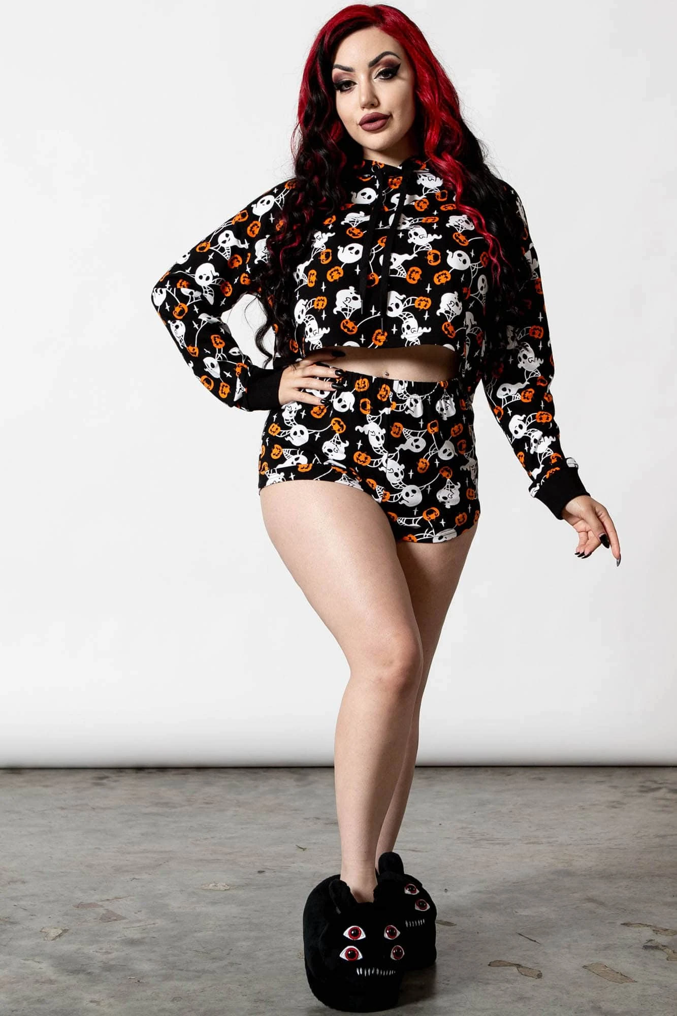 Wear with the ‘Haunted Pumpkin’ leggings and yer fave slippers for a look that will have you feelin’ yer self – whilst being super cozy! It’s a win-win!