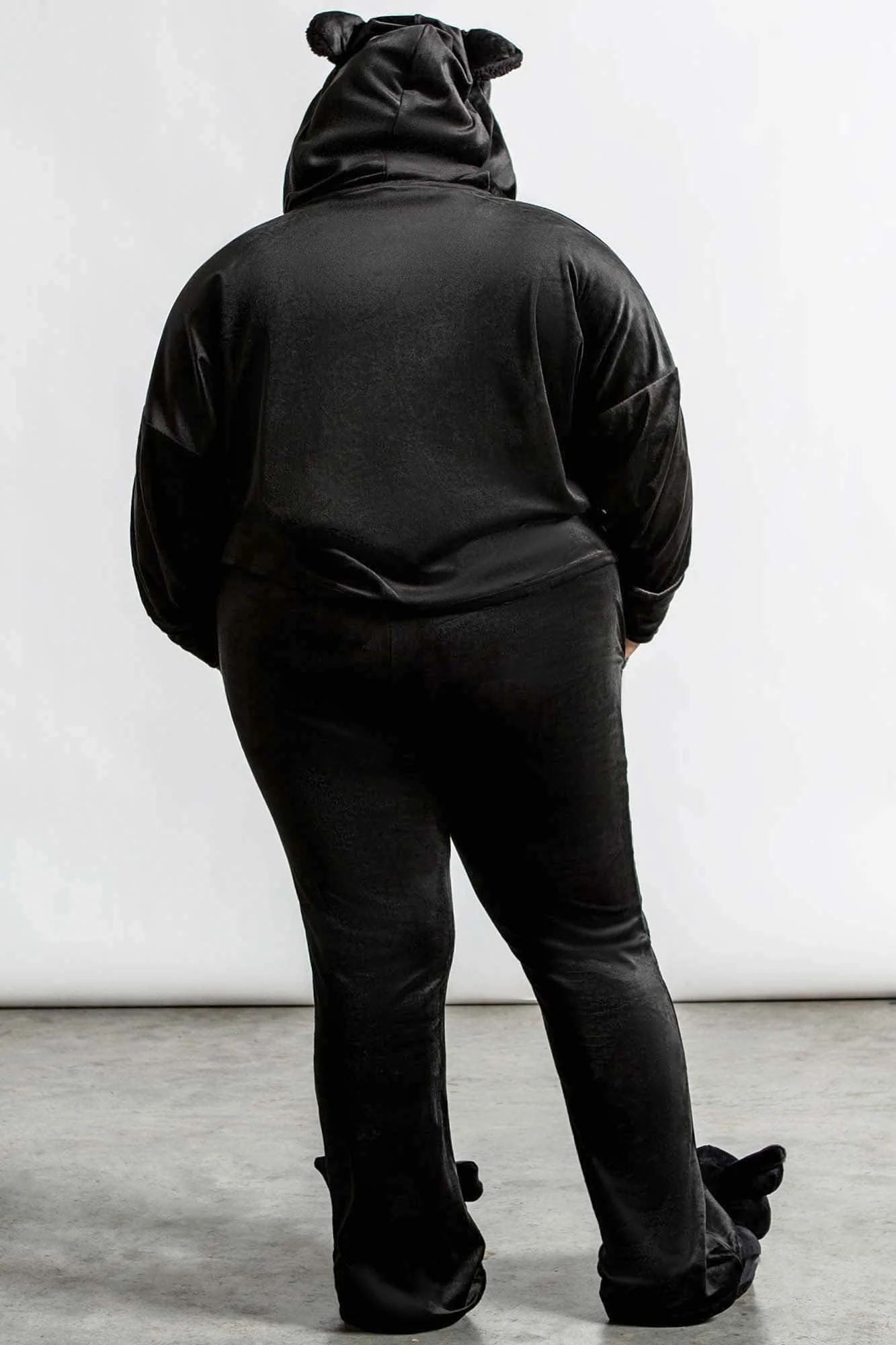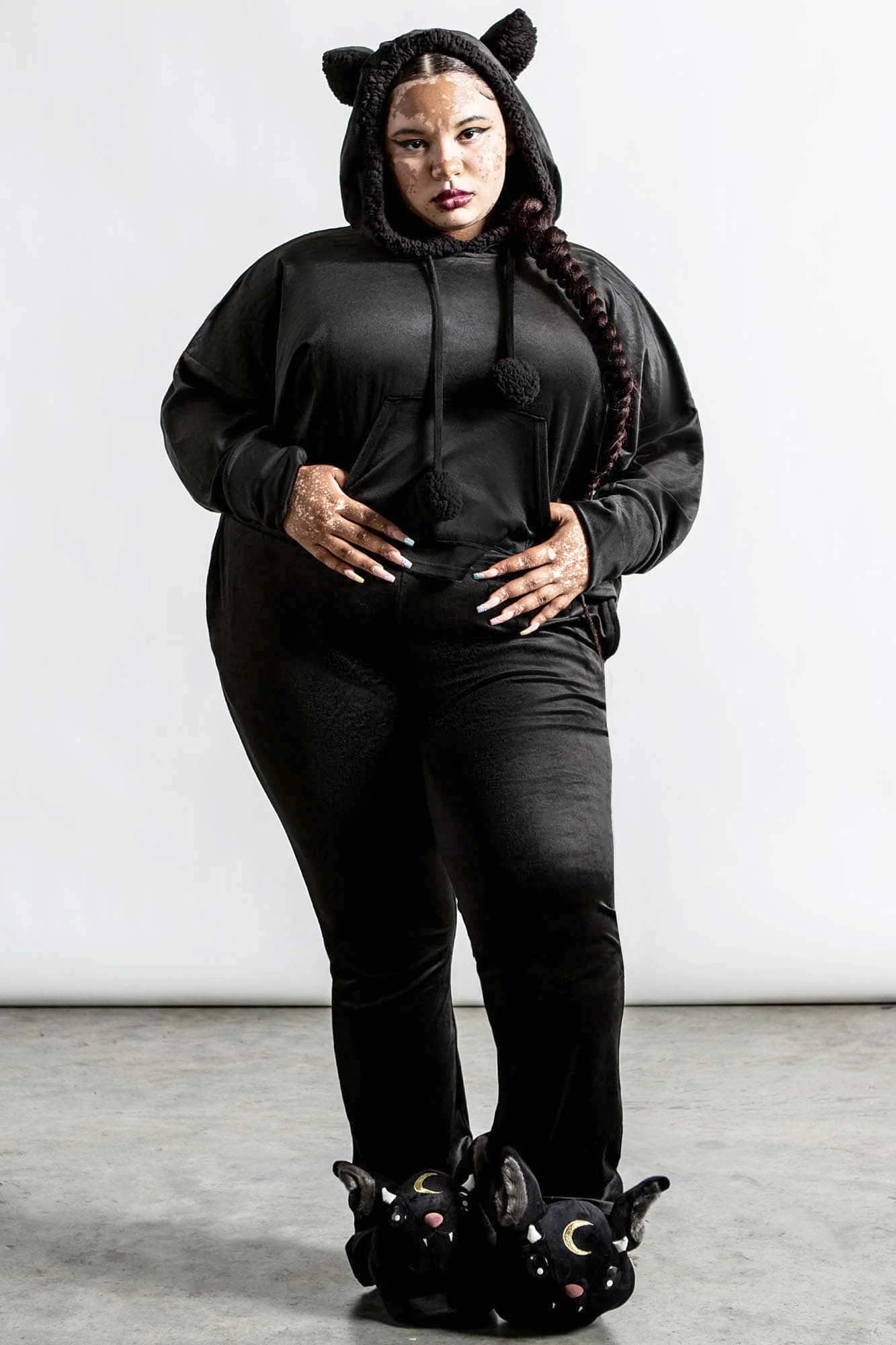 Look cosy + cute in our ‘Lone Wolf’ lounge set. Made from a super soft fabric to make you rawwwwr. Features a matching top with hood, ears and tassels, and long leg trousers. The puuurfect lounge set for a rainy day on the couch!