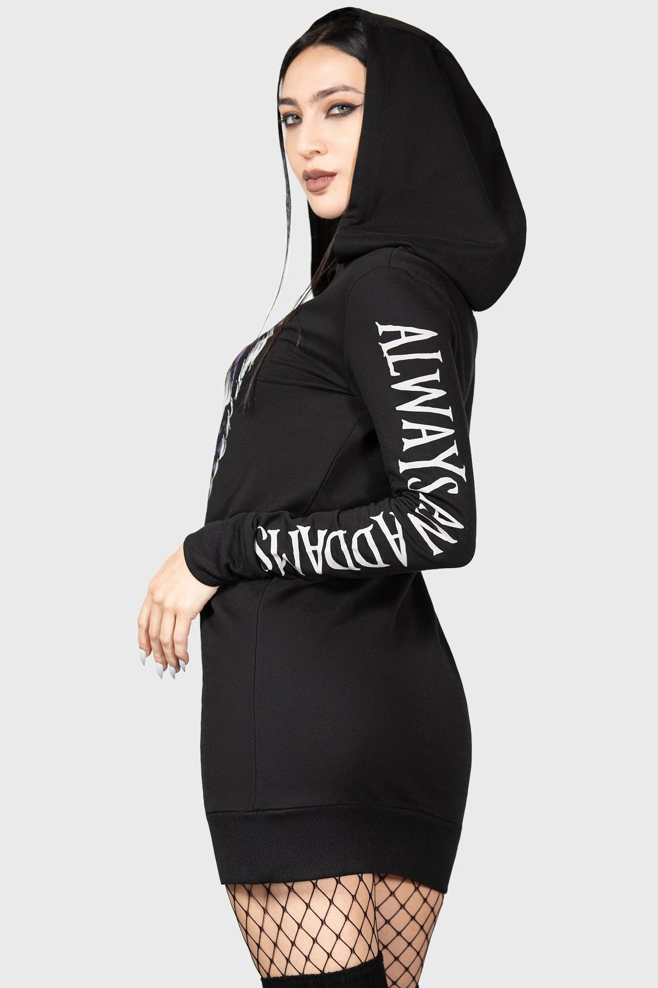 – Text on sleeves reads “Once an Addams always an Addams”.