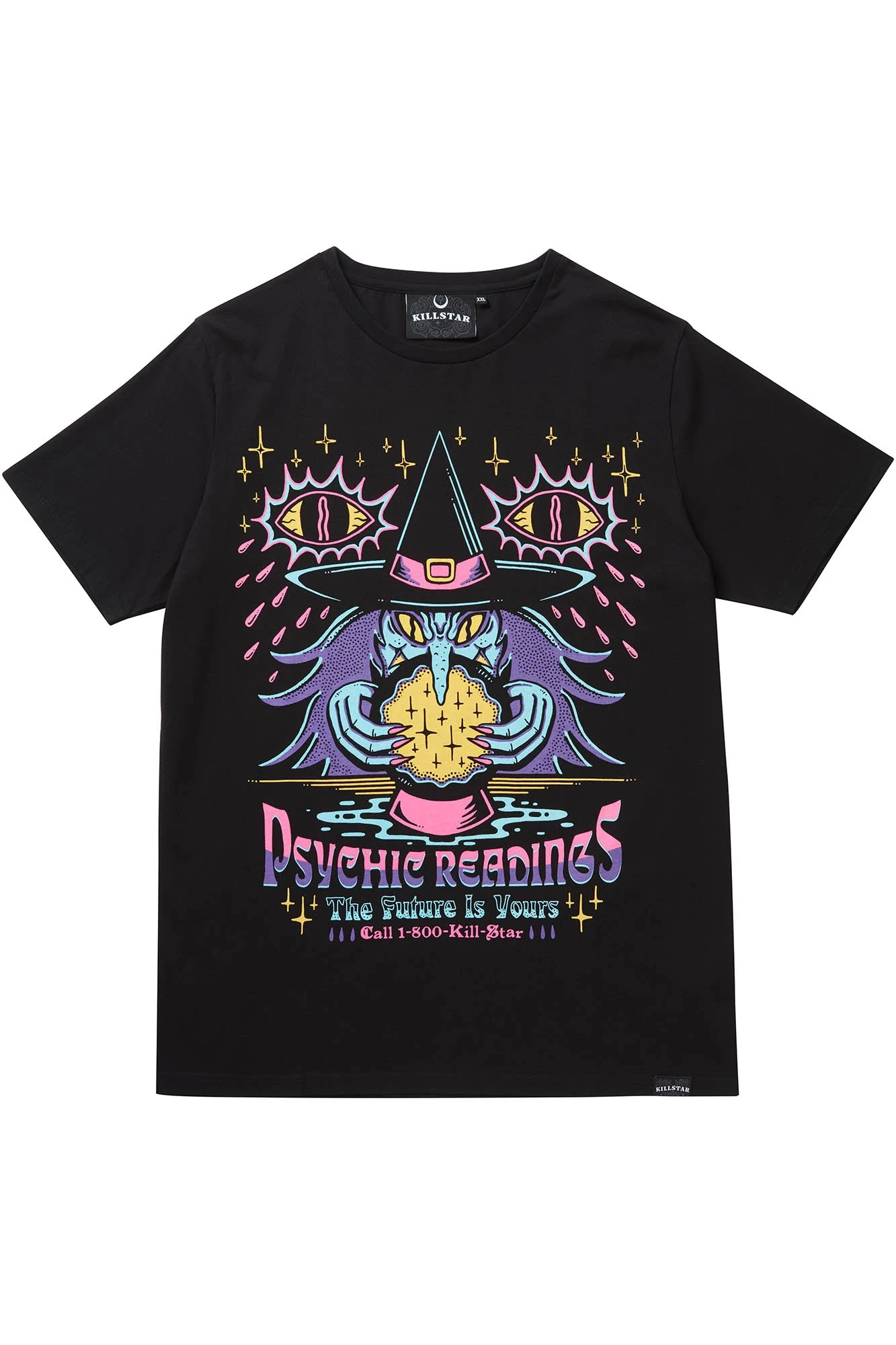 Play your cards right with our ‘Psychic reading’ T-shirt. Crafted in soft, stretch cotton jersey, with short sleeves and a large statement graphic on the front. The perfect t-shirt to brighten your dark wardrobe just a little. Great for layering!
