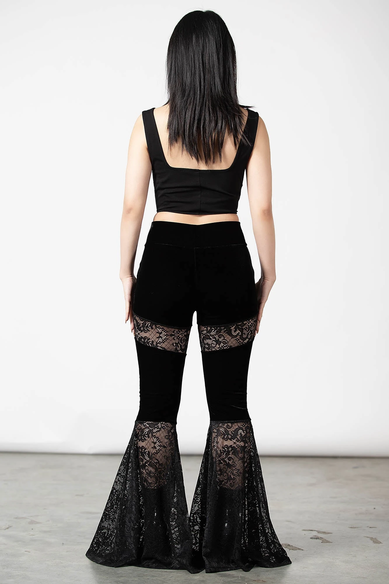 – Flared bell bottoms.