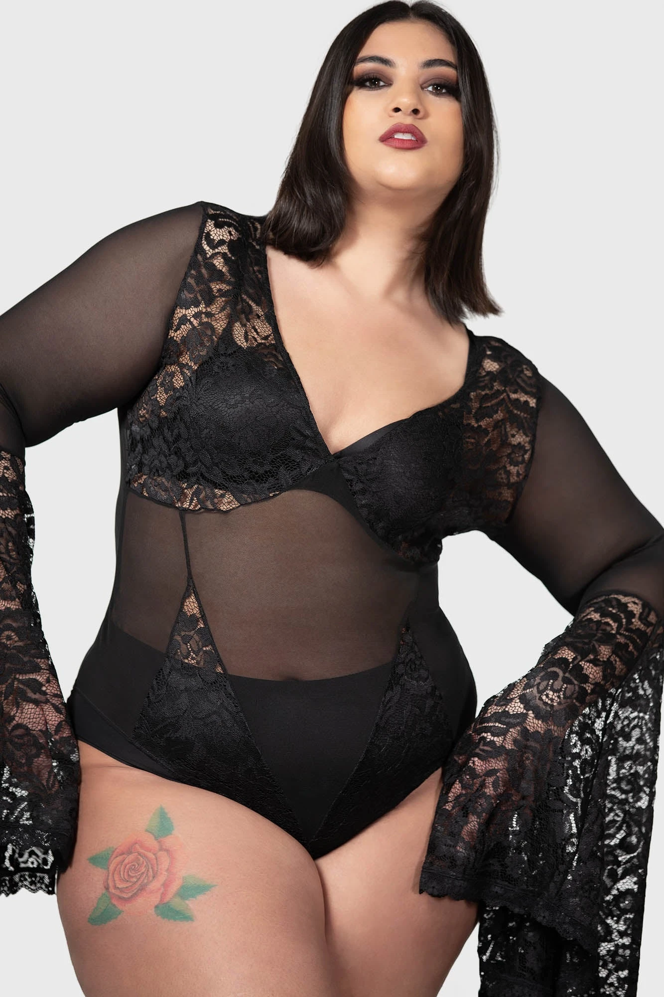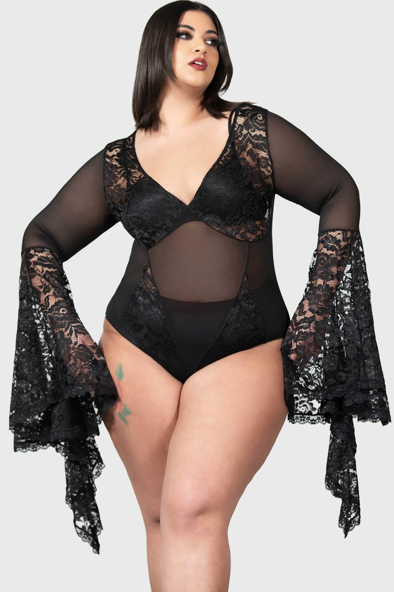 – Statement sheer lace inserts.